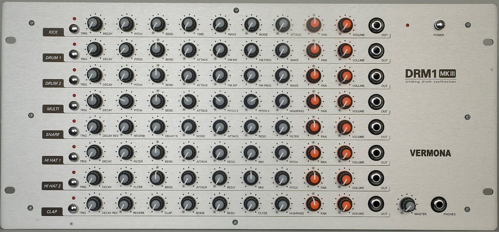 Hand-crafted 24bit, 44.1KHz mono and stereo WAV samples of the legendary Vermona DRM-1 analog drum machine.
